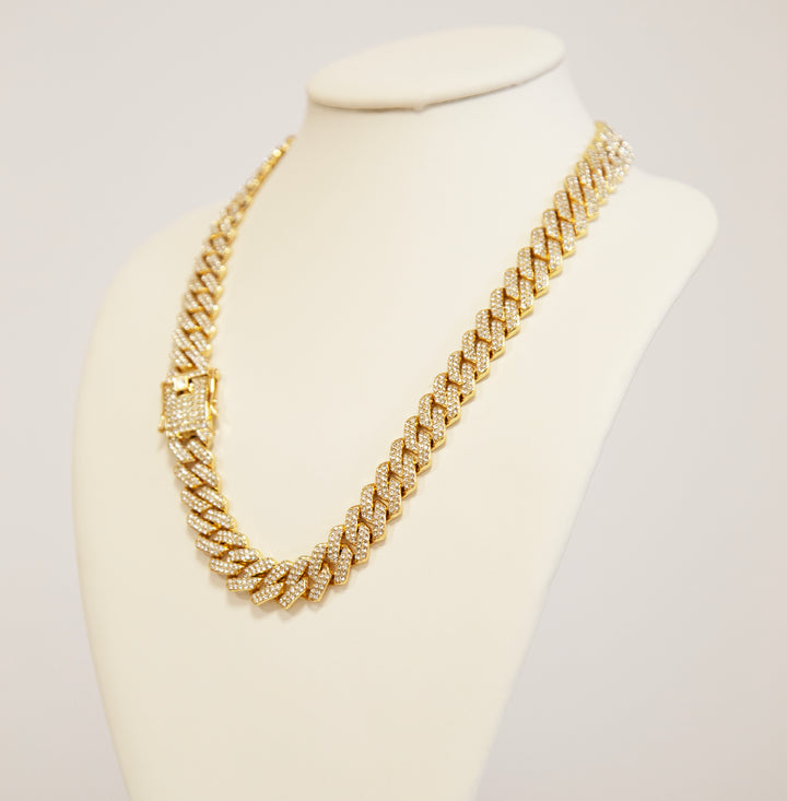 14kt Gold Plated Cuban Chain with Premium CZ Stone.